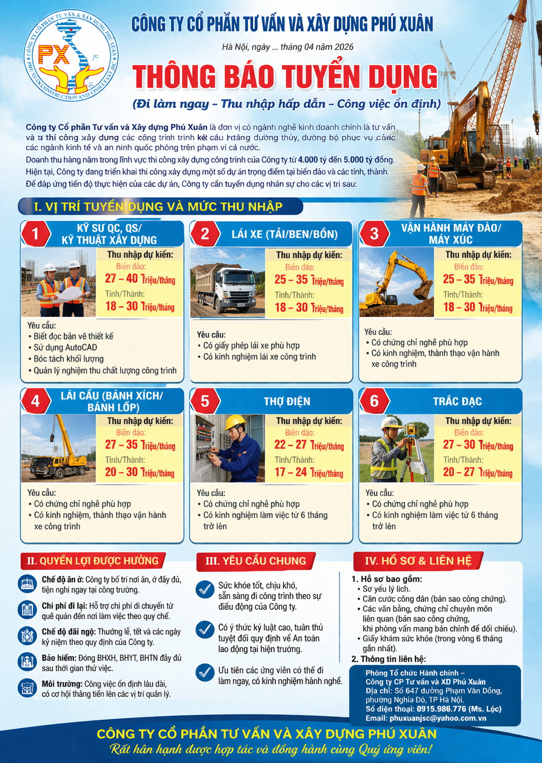 - Phòng Tổ chức Hành chính – Công ty CP Tư vấn và XD Phú Xuân